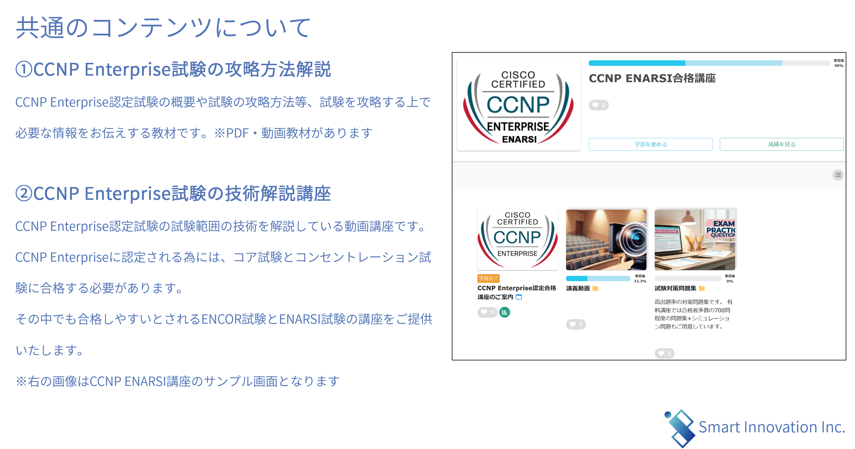 ・特徴①:CCNP Enterpriseの試験範囲を動画でわかりやすく解説